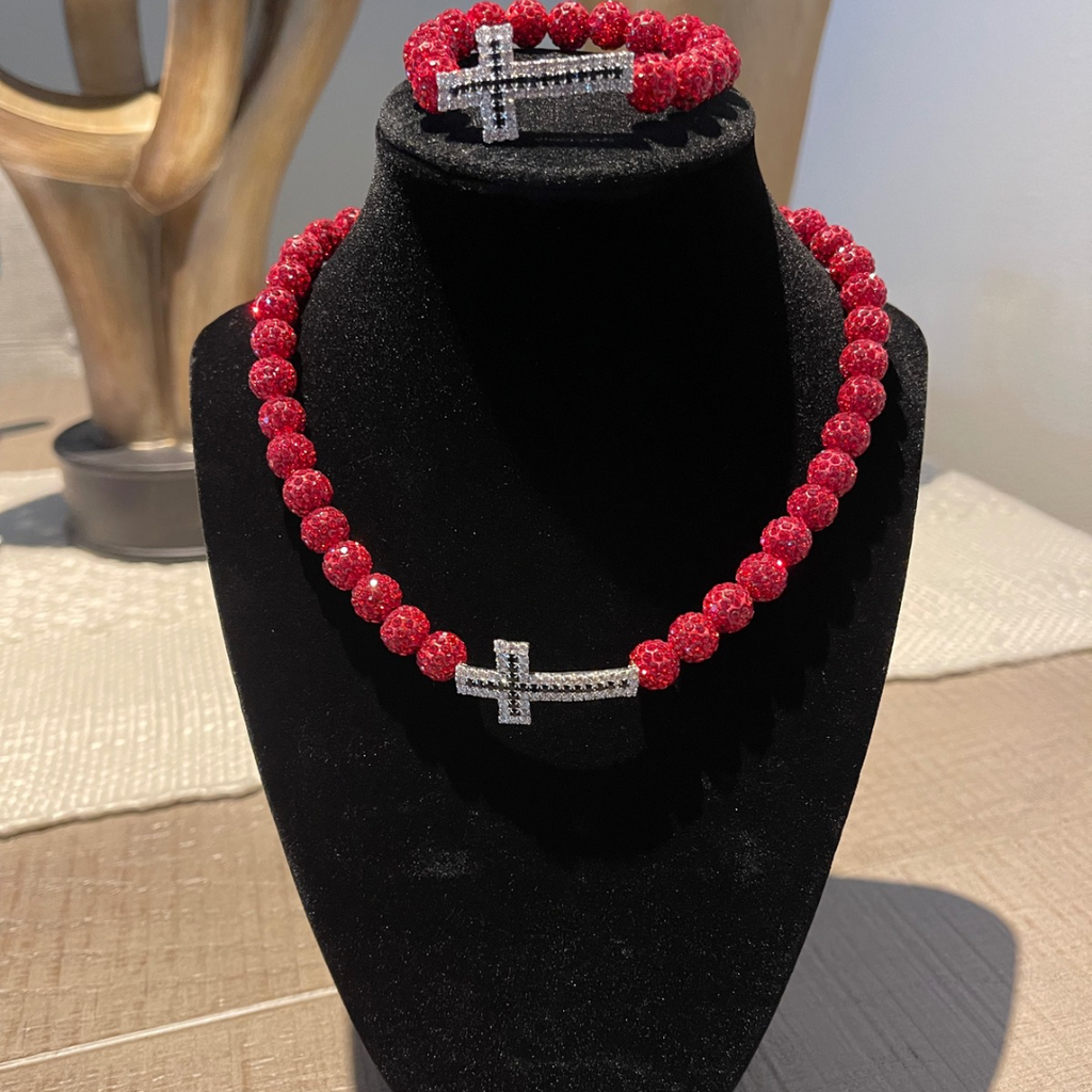10mm Crystal Beads with a cross accent (bracelet not included and also comes without the cross).